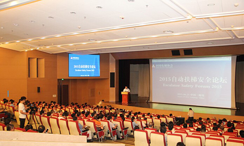 2015年8月27日,由中國(guó)電梯協(xié)會(huì)舉辦的首屆自動(dòng)扶梯安全論壇在廊坊阿爾卡迪亞酒店成功舉辦。本次會(huì)議得到了社會(huì)各界廣泛關(guān)注和支持,包括廊坊市委常委、副市長(zhǎng)喻華峰、中國(guó)電梯協(xié)會(huì)理事長(zhǎng)李守林、國(guó)內(nèi)外專家、企業(yè)代表、用戶代表及行業(yè)中立組織共300余人參加會(huì)議。